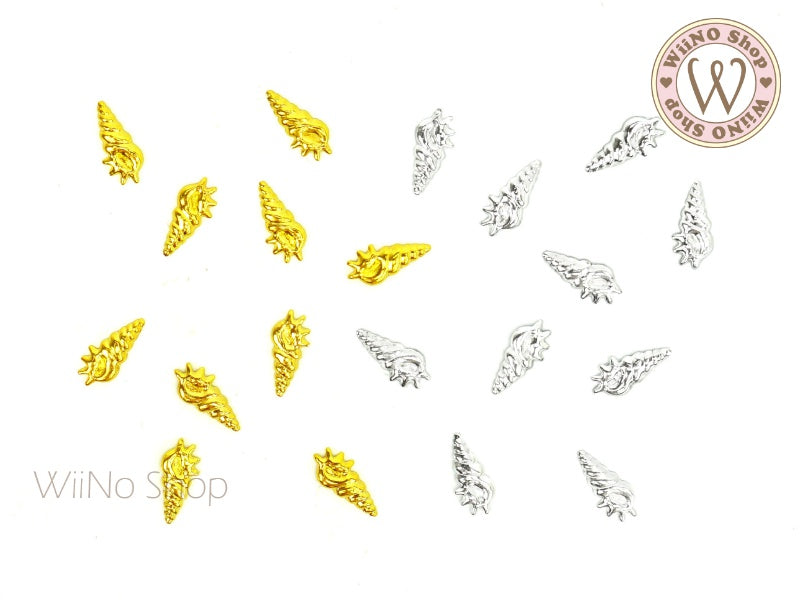 Silver Mini Spiral Seashell Metal Studs - 10 pcs