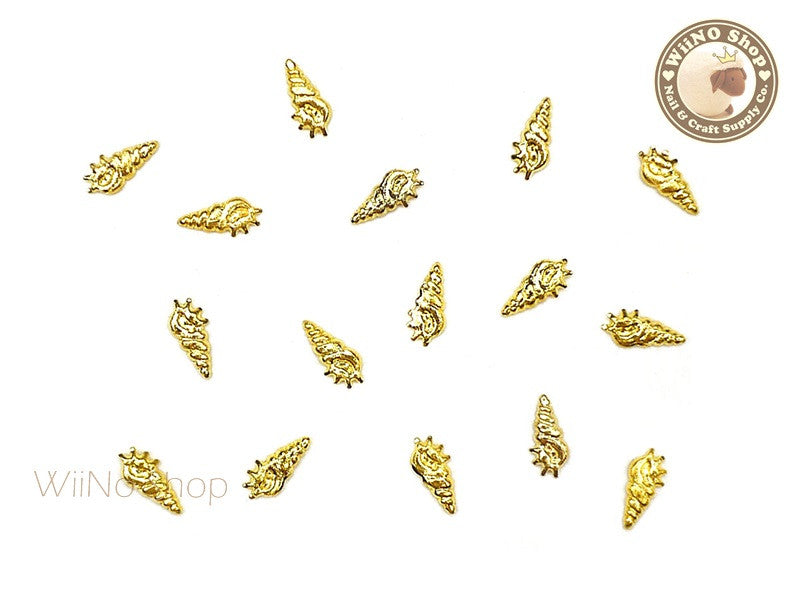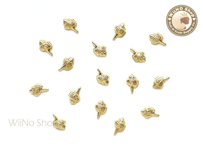 Gold Mini Spiral Seashell Metal Studs - 10 pcs