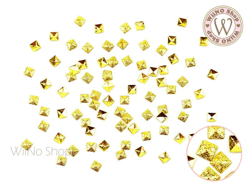 3mm Gold Textured Square Metal Studs - 25 pcs