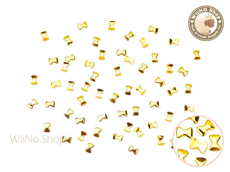 2 x 3mm Gold Mini Bow Metal Studs - 25 pcs