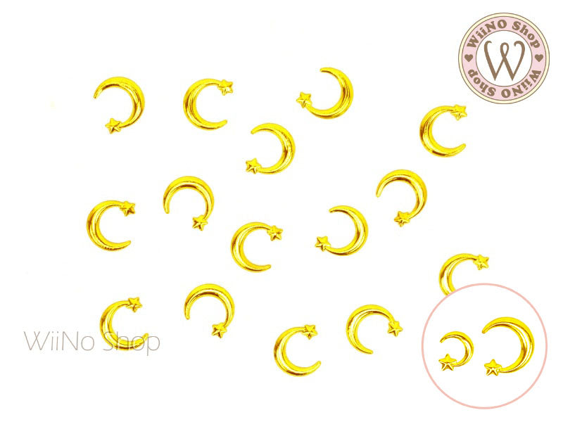 Gold Moon & Star Metal Studs - 10 pcs (5mm/8mm)