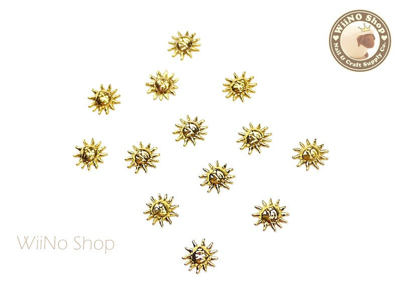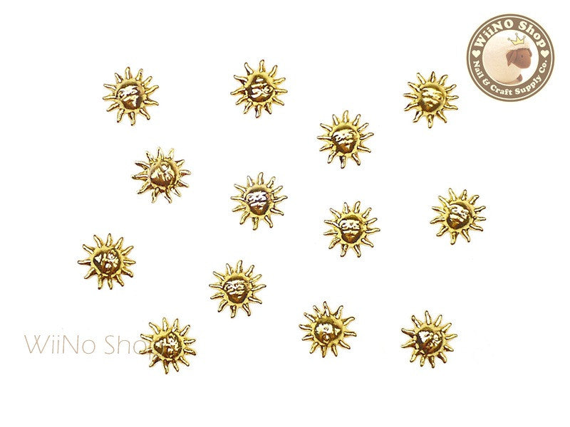 Gold Sun Face Metal Studs - 10 pcs
