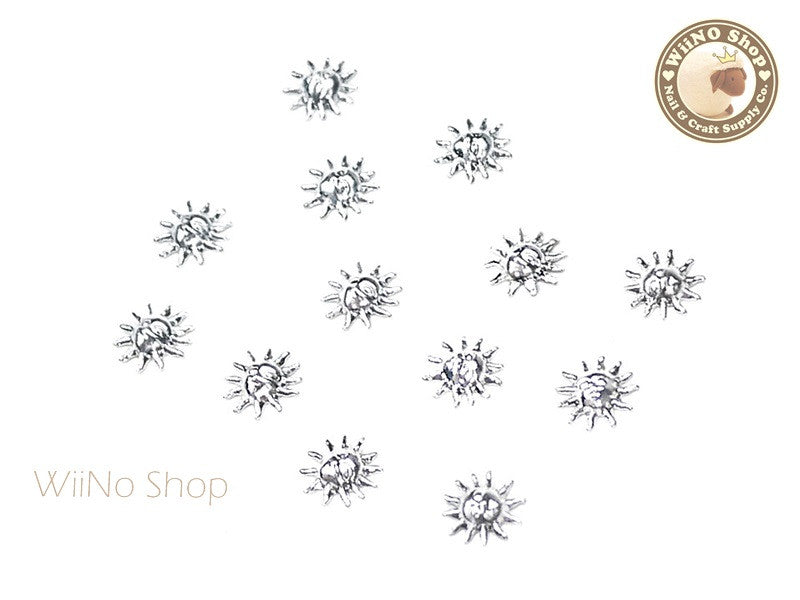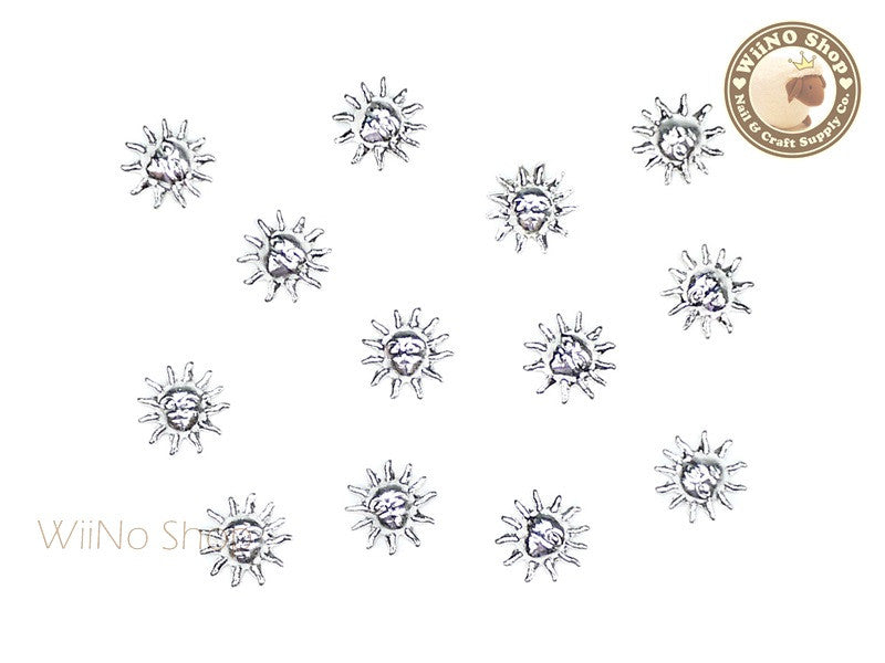 Silver Sun Face Metal Studs - 10 pcs