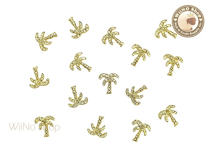 Gold Palm Tree Metal Studs - 10 pcs