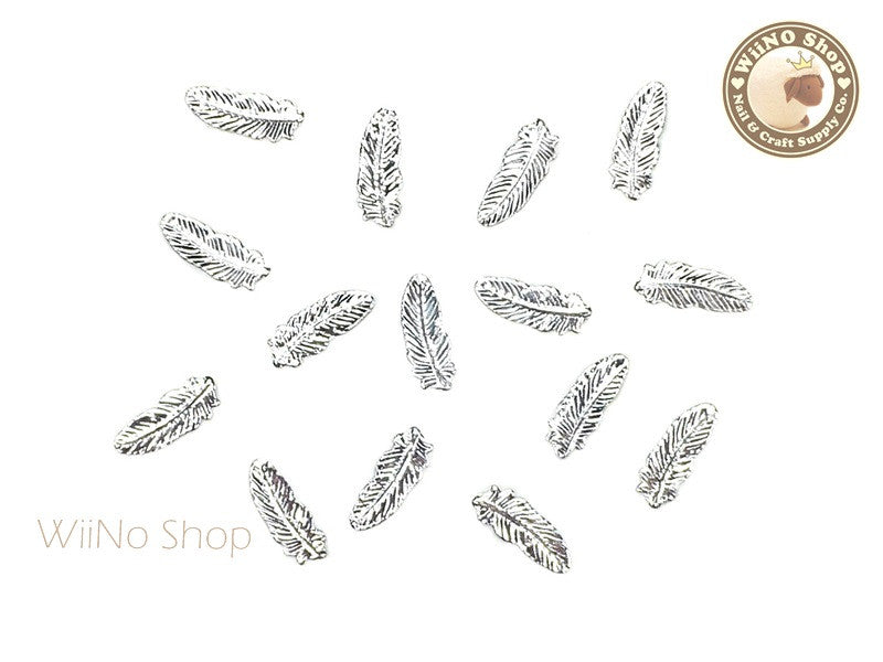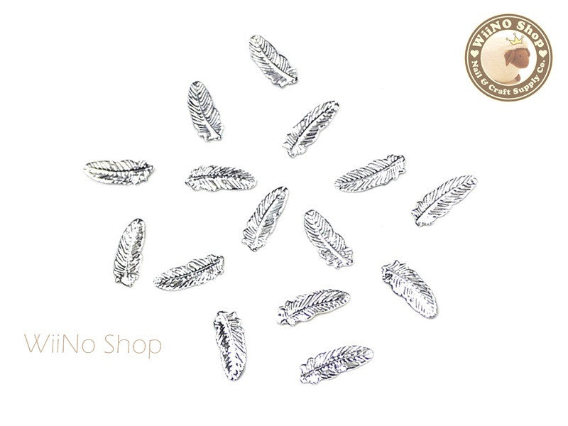 Silver Feather Metal Studs - 10 pcs
