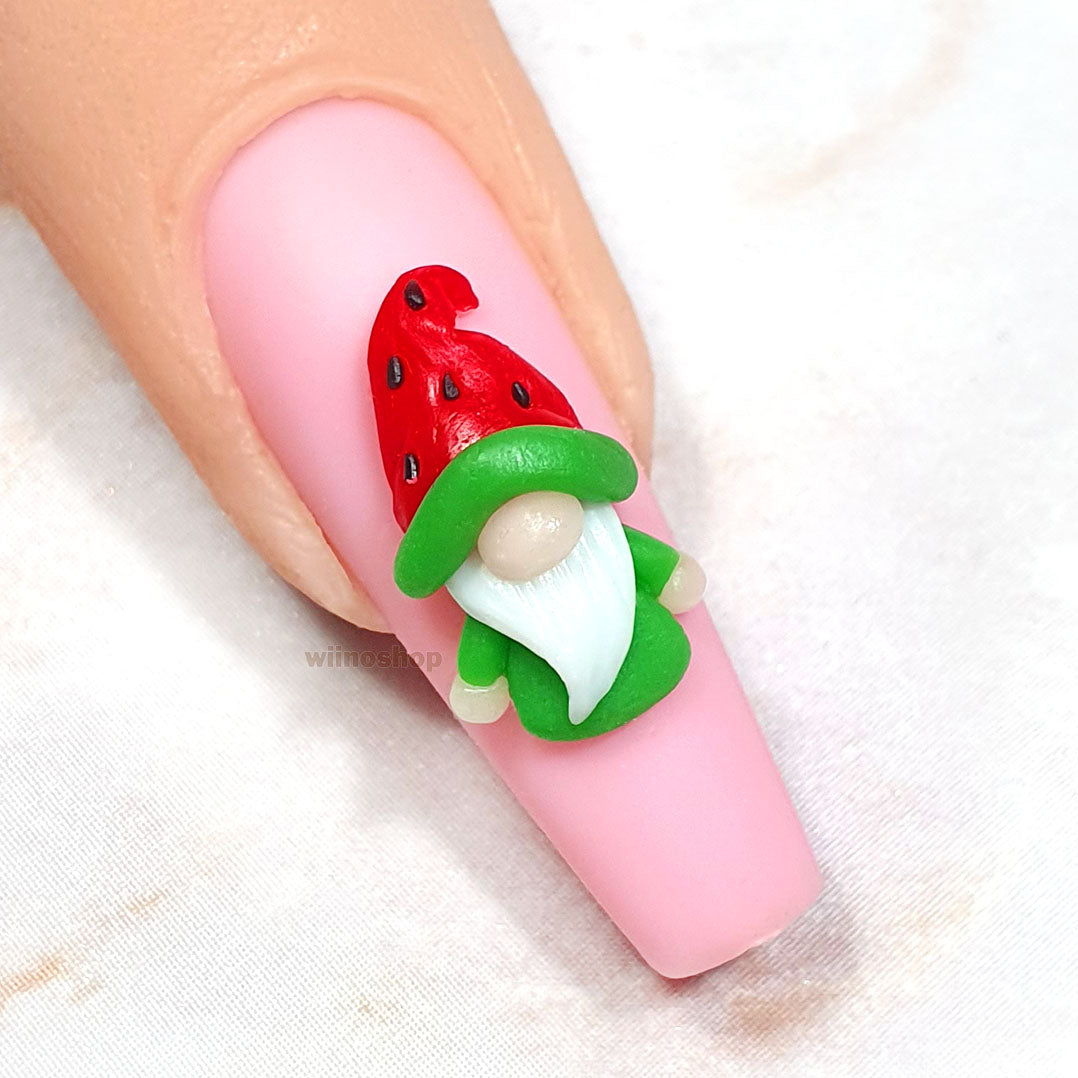 Watermelon Hat Gnome 3D Handmade Nail Art Charm - 2 pcs